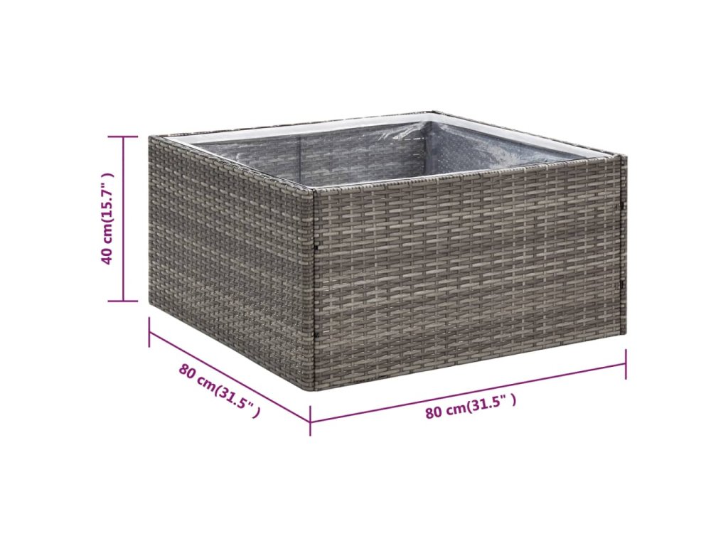 Zahradní truhlík šedý 80 x 80 x 40 cm polyratan 319175
