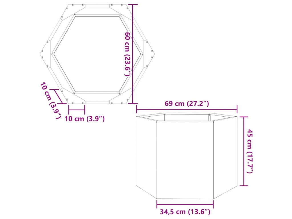 Zahradní truhlík šestihranný 69 x 60 x 45 cm nerezová ocel 851126