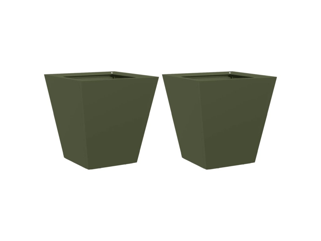 Zahradní truhlíky 2 ks olivově zelené 30 x 30 x 30 cm ocel 851045