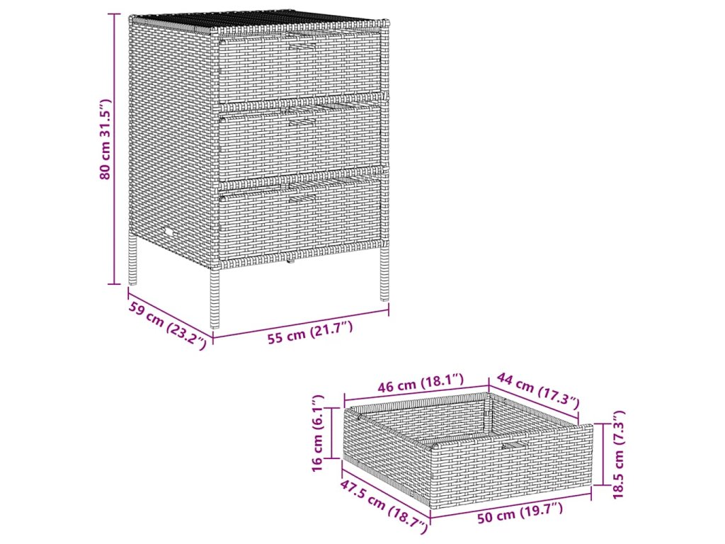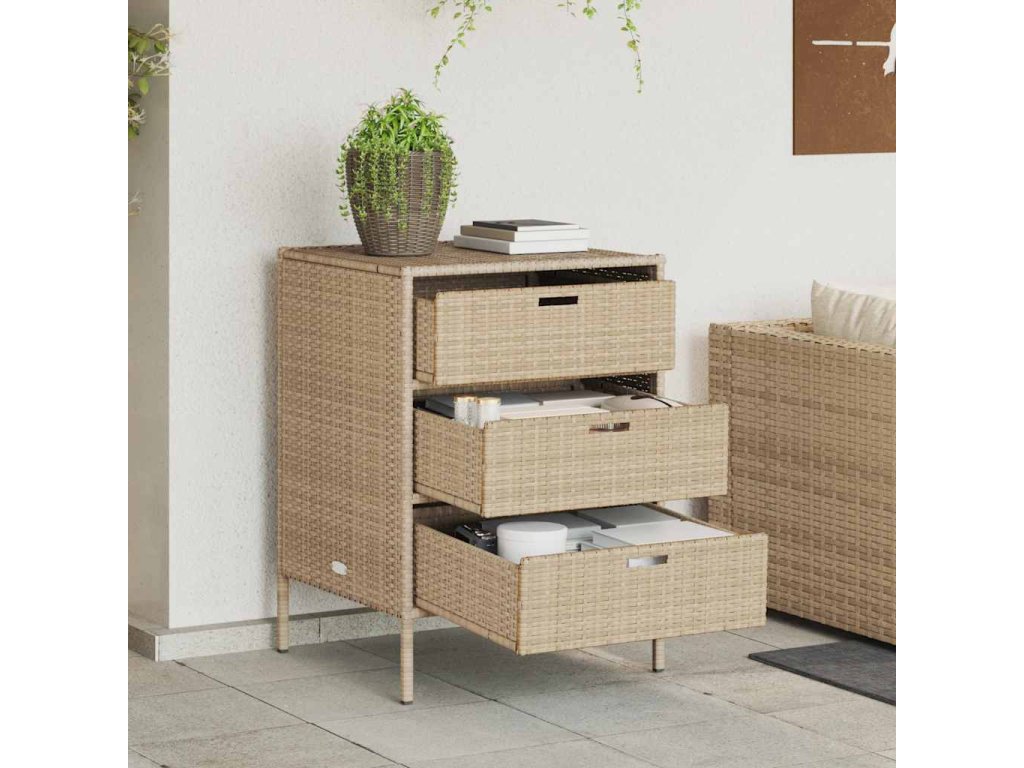 - Dostatek úložného prostoru: Tato venkovní úložná skříň má 3 zásuvky, které můžete využít k uschování vašeho zahradního nářadí, hraček k bazénu, venkovních podušek atd.