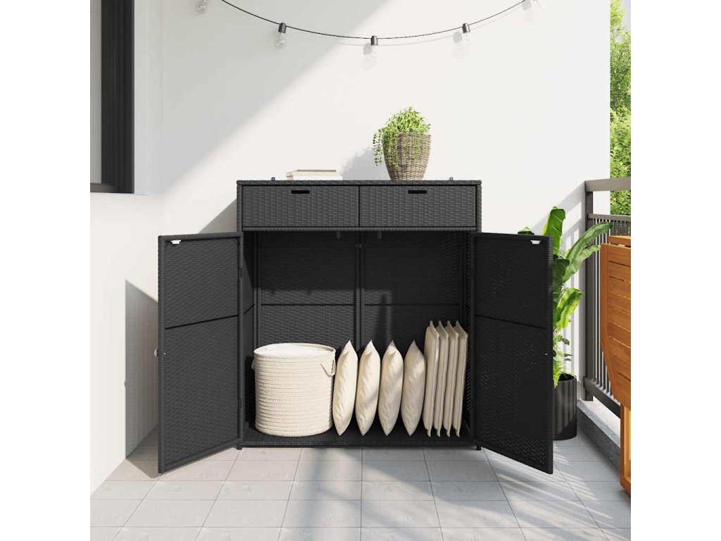 Zahradní úložná skříň černá 105 x 55 x 113 cm polyratan 365563