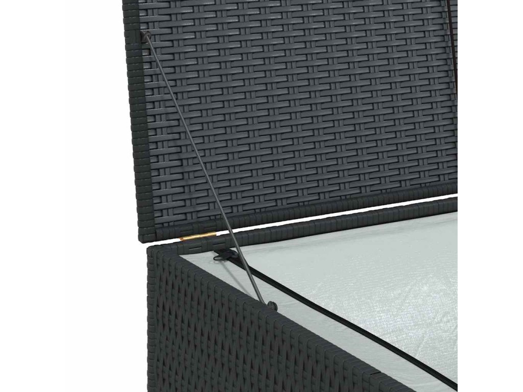 Klimaticky odolný PE ratan, ze kterého je úložná truhla vyrobená, se snadno čistí, je odolný vůči opotřebení a vhodný jak pro venkovní, tak i vnitřní použití. Zahradní úložný box má pevný ocelový rám s práškovým nástřikem, který zaručuje dlouhou životnost. Vnitřní výstelka z PE se zapínáním na zip ochrání obsah před vlhkostí. Úložná truhla má moderní design, který se hodí do jakéhokoli bydlení, ať už uvnitř nebo venku.
