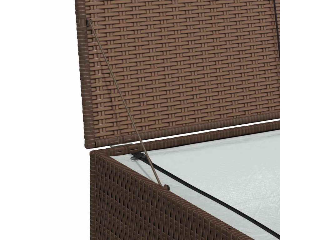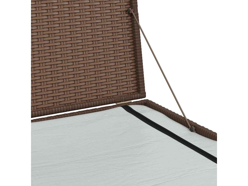 Klimaticky odolný PE ratan, ze kterého je úložná truhla vyrobená, se snadno čistí, je odolný vůči opotřebení a vhodný jak pro venkovní, tak i vnitřní použití. Zahradní úložný box má pevný ocelový rám s práškovým nástřikem, který zaručuje dlouhou životnost. Vnitřní výstelka z PE se zapínáním na zip ochrání obsah před vlhkostí. Úložná truhla má moderní design, který se hodí do jakéhokoli bydlení, ať už uvnitř nebo venku.