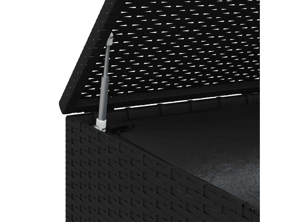 Tento zahradní úložný box má robustní ocelový rám s práškovým nástřikem, který se vyznačuje vysokou odolností. Úložná truhla je zhotovena z PE ratanu odolného vůči povětrnostním vlivům, snadno se tedy čistí a je vhodná pro venkovní i vnitřní použití. Vnitřní voděodolný vak z PE s krytem a zipem chrání vaše věci před vlhkostí. Box na podušky je navíc vybaven mechanismem s plynovým pístem, který usnadňuje otevírání a zavírání a chrání prsty a ruce před nechtěným přivřením.