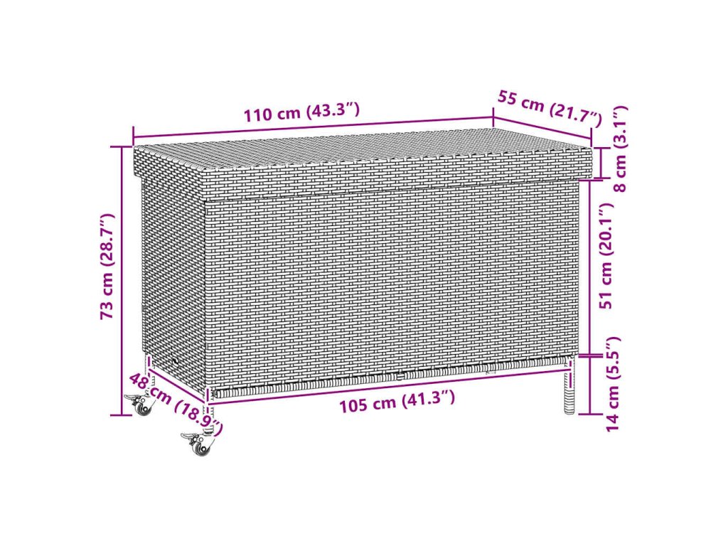 - Vnější rozměry: 110 x 55 x 73 cm (D x Š x V)