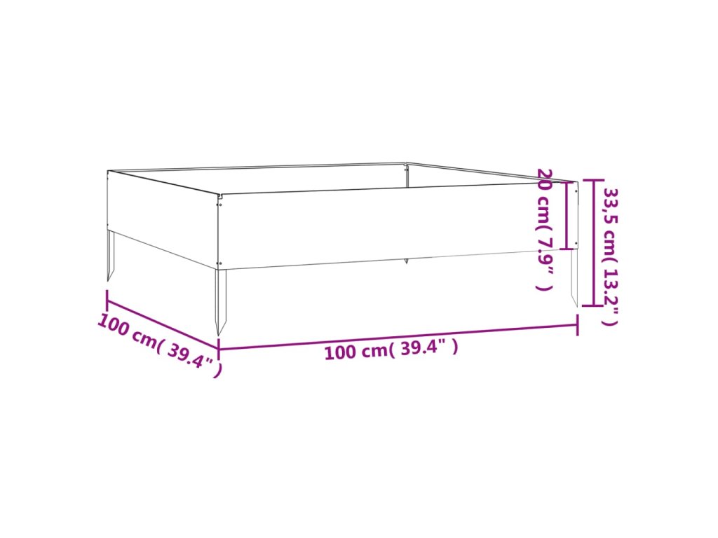 Zahradní vyvýšený záhon 100 x 100 x 33,5 cm cortenová ocel 824515