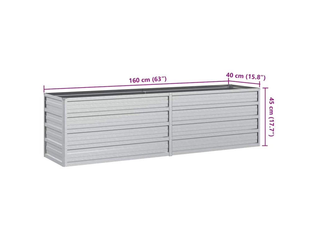 Zahradní vyvýšený záhon 160x40x45 cm pozinkovaná ocel stříbrný 316895