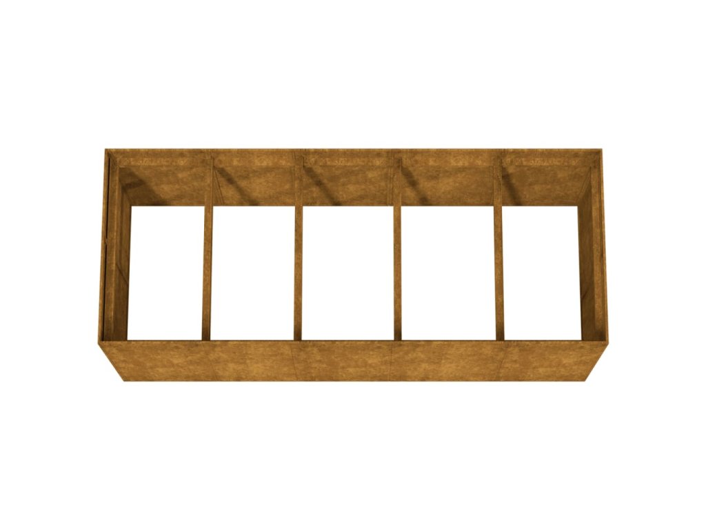- Otevřené dno: Tento truhlík má otevřené dno, což umožňuje snadný odtok přebytečné vody a zároveň dovoluje kořenům rostlin volně se rozšiřovat a přijímat více živin z půdy.
