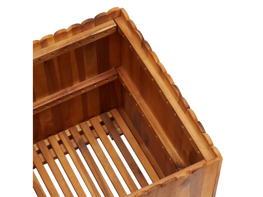 Truhlík s nenápadným rustikálním designem vnese do vašeho venkovního bydlení dotek přírodních barev. Je vyrobený z robustního, masivního akáciového dřeva, takže skvěle odolává povětrnostním vlivům, a proto se hodí pro venkovní použití. Dno truhlíku je laťkové, což vevnitř účinně zadržuje půdu, přitom však dovoluje odtékání přebytečné vody.
