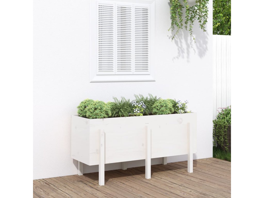 Zahradní vyvýšený záhon bílý 121 x 50 x 57 cm masivní borovice 825227