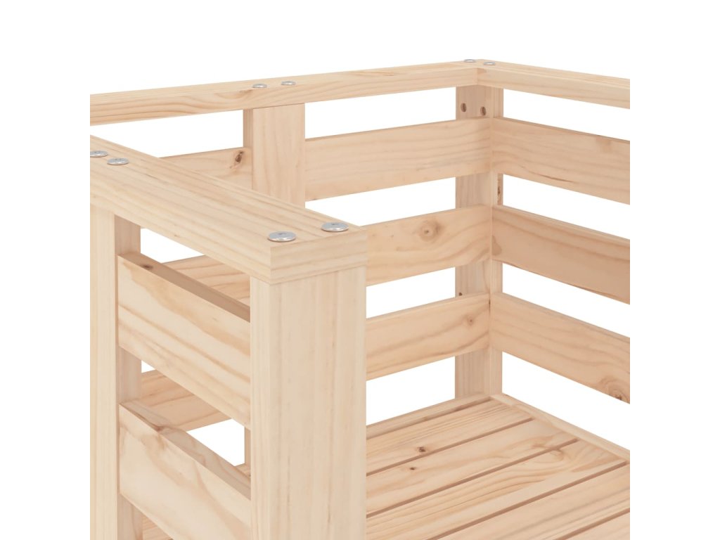 - Masivní borové dřevo: Zahradní sezení je vyrobeno z masivního borového dřeva, které zajišťuje pevnost a odolnost. Masivní borové dřevo je krásný přírodní materiál. Borové dřevo má rovnou kresbu a obsahuje suky, které materiálu dodávají jeho charakteristický, rustikální vzhled.