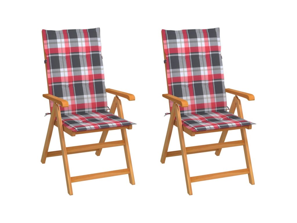 Zahradní židle 2 ks červené kárované podušky masivní teak 3062389