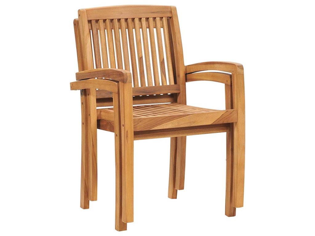 Sada zahradních židlí má laťková opěradla a mírně zaoblené područky, aby se vám na nich lépe sedělo. Jednotlivé židle se na sebe dají stohovat, čímž vám pomohou ušetřit místo, když je zrovna nepoužíváte. Přibalené podušky jsou nejen praktické, ale plní také dekorativní funkci.
