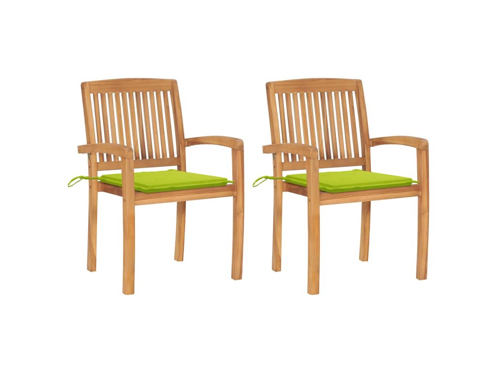 Zahradní židle 2 ks jasně zelené podušky masivní teakové dřevo 3063263
