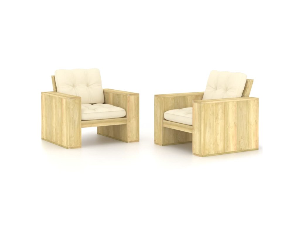 Zahradní židle 2 ks + krémové podušky impregnovaná borovice 3065791