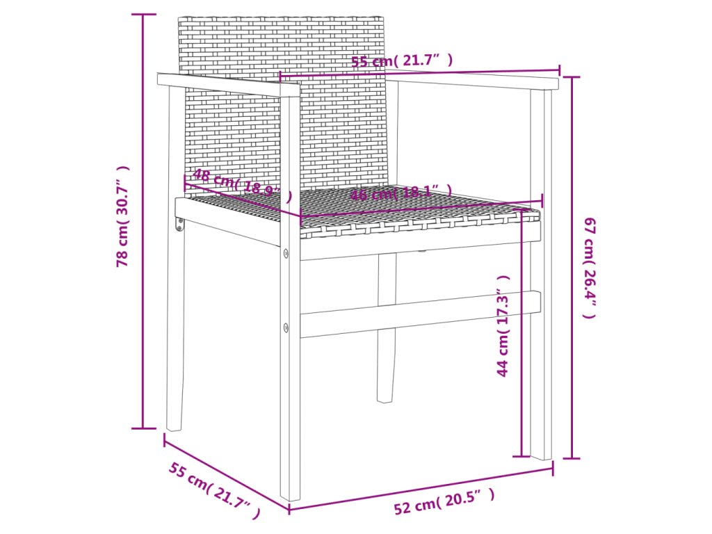 Zahradní židle 2 ks šedé polyratan a masivní dřevo 368709