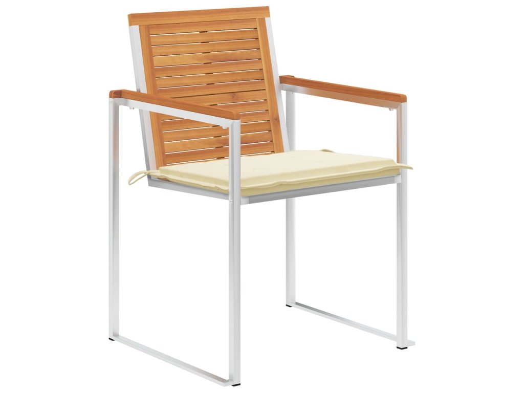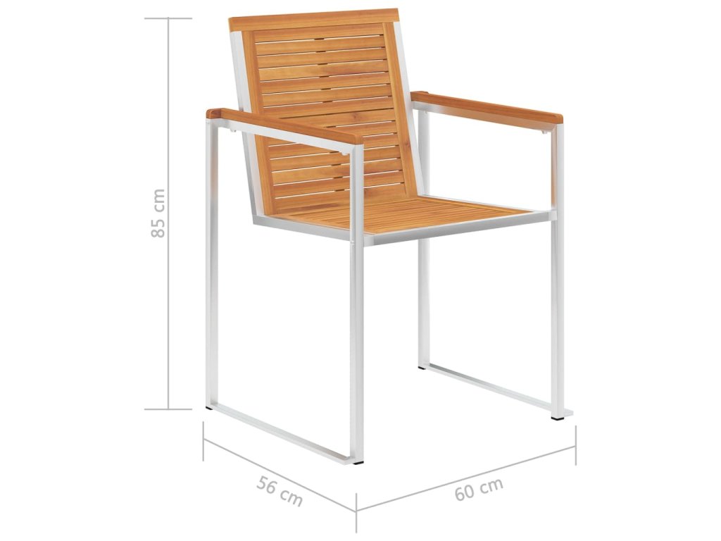 Jídelní židle jsou vyrobeny z masivního akáciového dřeva a vysoce kvalitní nerezové oceli, takže jsou vysoce odolné, nerezavějící, robustní a snadno se čistí vlhkým hadříkem. Přiložená poduška je více než jen praktickým doplňkem, plní také dekorativní funkci. Posaďte se k příjemné večeři pod širým nebem nebo jen relaxujte a užívejte si počasí s touto klasickou sadou zahradních židlí.