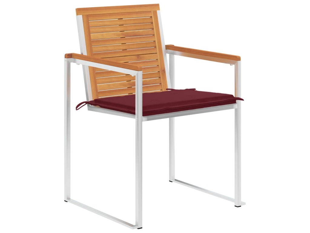 Jídelní židle jsou vyrobeny z masivního akáciového dřeva a vysoce kvalitní nerezové oceli, takže jsou vysoce odolné, nerezavějící, robustní a snadno se čistí vlhkým hadříkem. Přiložená poduška je více než jen praktickým doplňkem, plní také dekorativní funkci. Posaďte se k příjemné večeři pod širým nebem nebo jen relaxujte a užívejte si počasí s touto klasickou sadou zahradních židlí.
