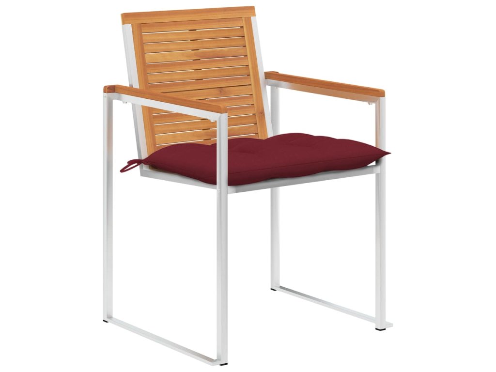 Jídelní židle jsou vyrobené z masivního akáciového dřeva a prvotřídní nerezové oceli. Proto mají dlouhou životnost, jsou odolné vůči rzi, robustní a snadno se čistí vlhkým hadříkem. Podušky, jež jsou více než jen praktický doplněk, mají také dekorativní funkci. Usaďte se k chutné večeři na zahradě nebo odpočívejte a užívejte si počasí s touto sadou klasických zahradních židlí.