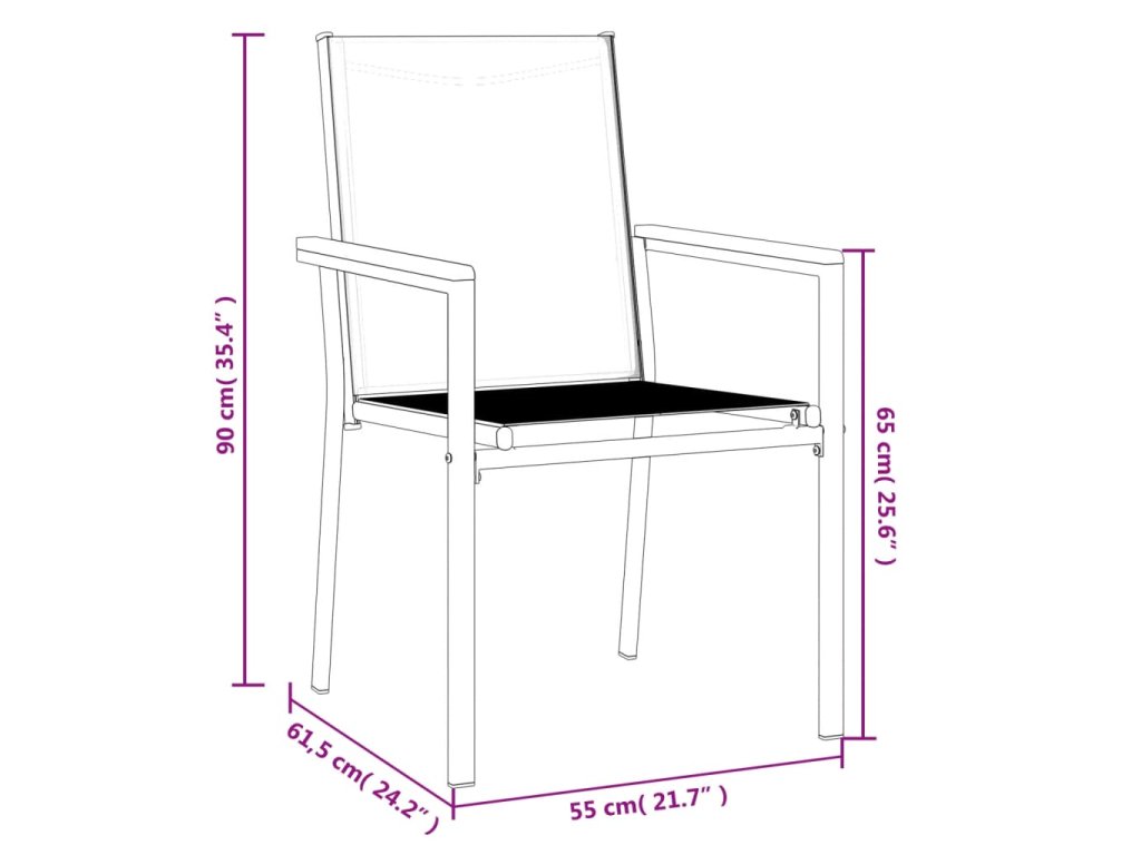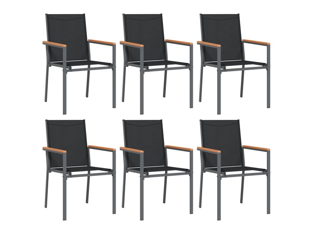 Zahradní židle 6 ks černé 55 x 61,5 x 90 cm textilen a ocel 3187086