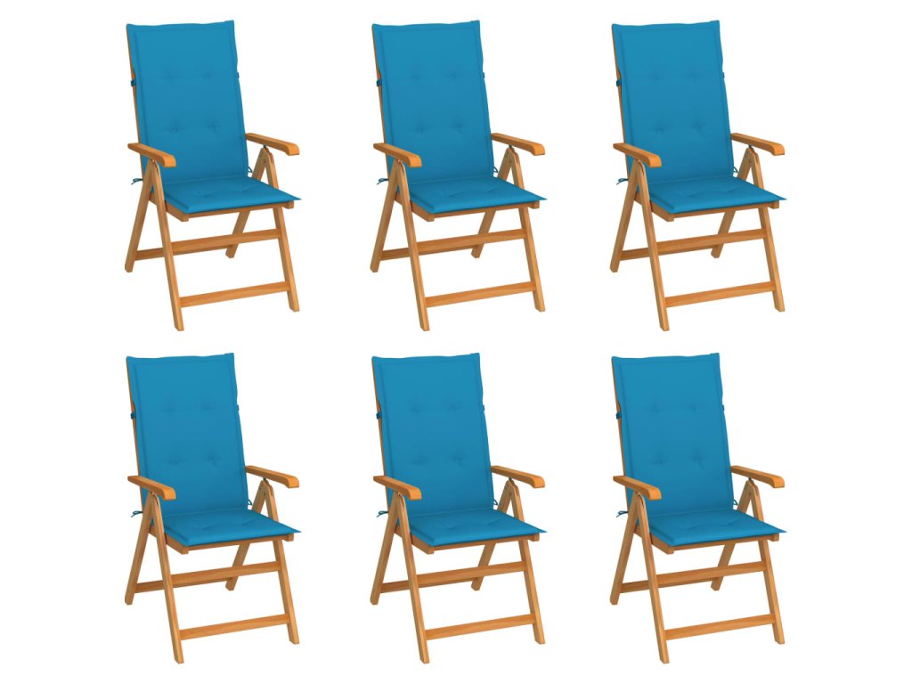 Zahradní židle 6 ks s modrými poduškami masivní teak 3065564