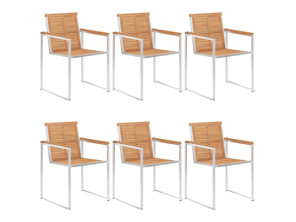 Nábytek je zhotovený z extrémně odolného teakového tvrdého dřeva, které již prošlo procesem smršťování, bylo uměle vysušené a poté jemně a dohladka obroušené. Teakové dřevo je oceňované pro svou výjimečnou pevnost a klimatickou odolnost, a proto je jedním z nejoblíbenějších materiálů pro výrobu zahradního nábytku. Je to skvělá volba, pokud si chcete pořídit venkovní výbavu, která vám vydrží sloužit dlouhá léta. Vzhledem k rámu z vysoce kvalitní nerezové oceli jsou židle zároveň robustní a odolné vůči korozi. Přiložená poduška slouží nejen jako praktický doplněk – plní také dekorativní funkci. Posaďte se a dopřejte si venku skvělou večeři nebo si jen tak odpočiňte a užívejte si počasí s touto klasickou sadou zahradních židlí.