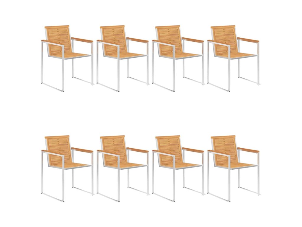 Nábytek je zhotovený z extrémně odolného teakového tvrdého dřeva, které již prošlo procesem smršťování, bylo uměle vysušené a poté jemně a dohladka obroušené. Teakové dřevo je oceňované pro svou výjimečnou pevnost a klimatickou odolnost, a proto je jedním z nejoblíbenějších materiálů pro výrobu zahradního nábytku. Je to skvělá volba, pokud si chcete pořídit venkovní výbavu, která vám vydrží sloužit dlouhá léta. Vzhledem k rámu z vysoce kvalitní nerezové oceli jsou židle zároveň robustní a odolné vůči korozi. Přiložená poduška slouží nejen jako praktický doplněk – plní také dekorativní funkci. Posaďte se a dopřejte si venku skvělou večeři nebo si jen tak odpočiňte a užívejte si počasí s touto klasickou sadou zahradních židlí.