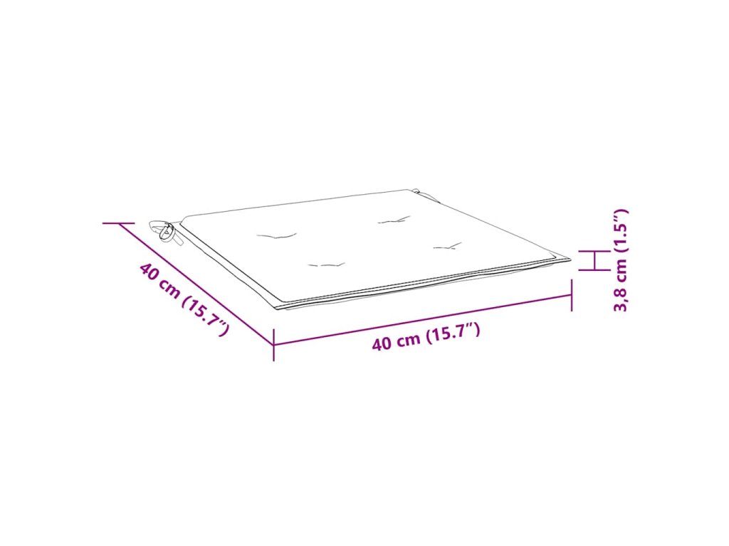 - Rozměry podušky: 40 x 40 x 4 cm (D x Š x T)