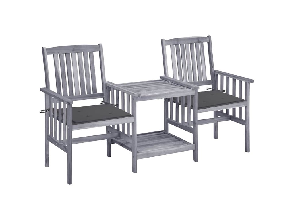 Zahradní židle s čajovým stolkem a poduškami masivní akácie 3061302