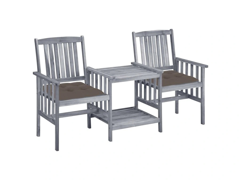 Stůl i židle jsou zhotovené z masivního akáciového dřeva, takže jsou mimořádně stabilní a robustní. Odolná stolní deska a spodní polička se skvěle hodí pro odkládání hrníčků, knih a dalších menších předmětů. Opěradla a područky křesílek vám pak zajistí příjemné posezení a relaxaci. Podušky vám dopřejí větší pohodlí. Každá poduška je opatřená dvěma páry šňůrek pro pevné uchycení.