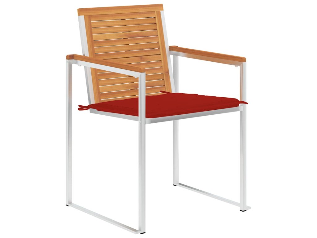 Tyto židle jsou vyrobené z masivního akáciového dřeva s olejovou povrchovou úpravou a z nerezové oceli 304, jsou tudíž odolné proti rzi, robustní a snadno se čistí. Mají podušku, se kterou bude sezení ještě pohodlnější. Každá poduška je opatřená 2 páry šňůrek, kterými můžete podušku pevně přivázat k venkovní židli.