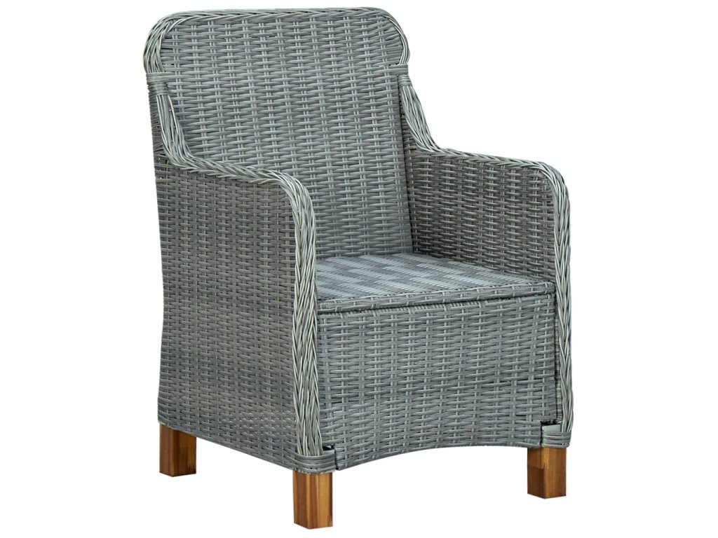 Zahradní židle má práškově lakovaný ocelový rám, potažený kulatým PE ratanem. Je robustní a snadno se čistí. Na silně polstrovaných poduškách na sedák se příjemně a pohodlně odpočívá. Potahy na poduškách mají zip, takže je můžete snadno sejmout a vyprat. Židle mají robustní a stabilní nohy z masivního akáciového dřeva. Jejich konstrukce je lehká, což usnadňuje přenášení židlí.