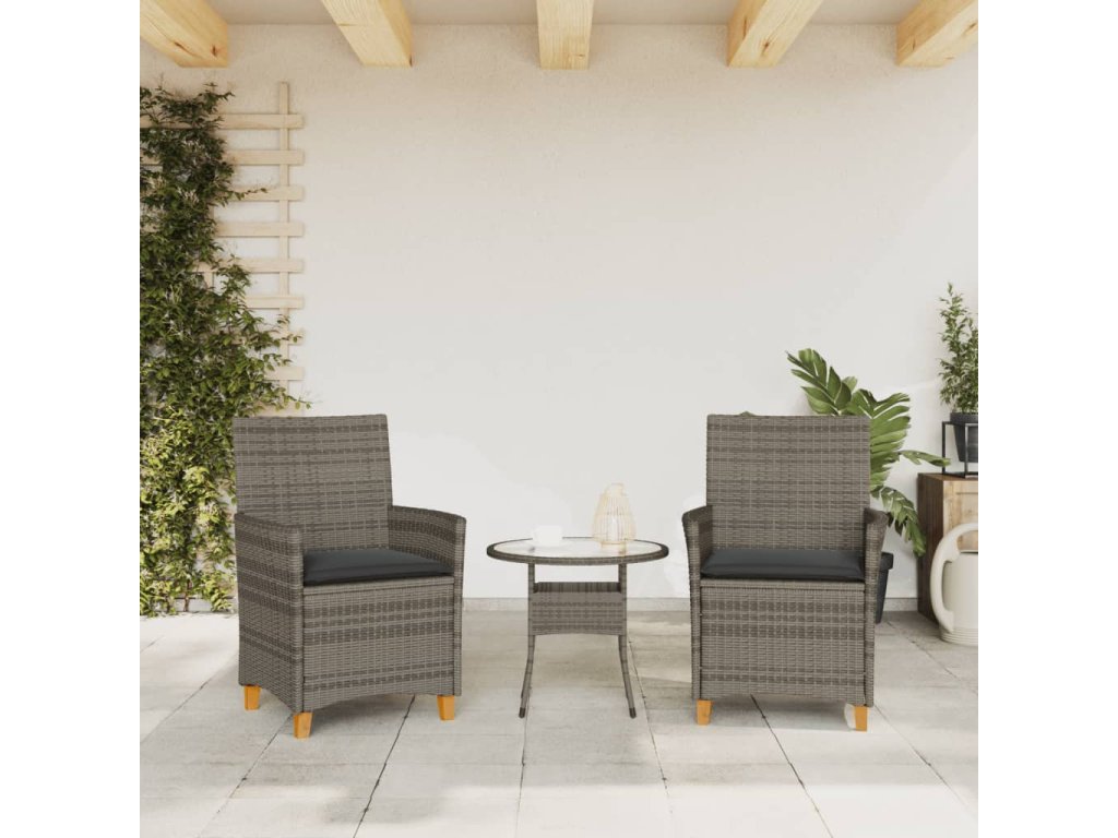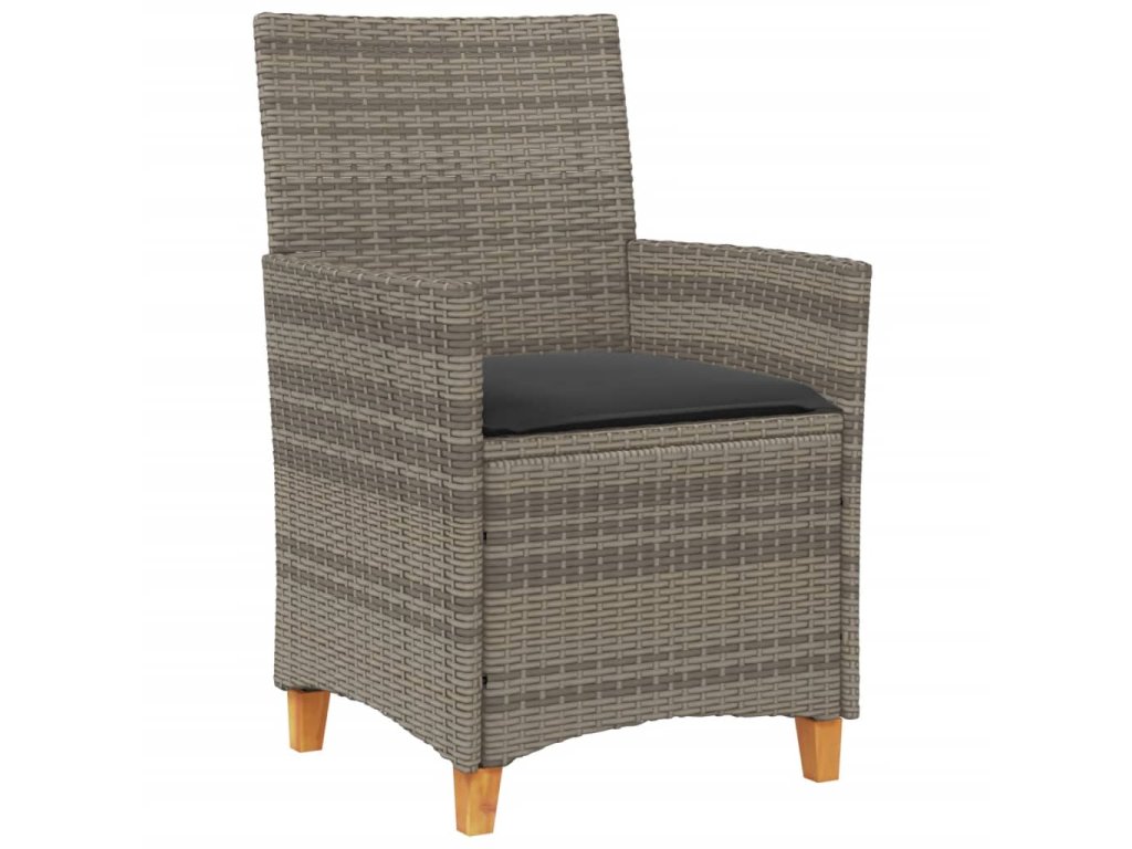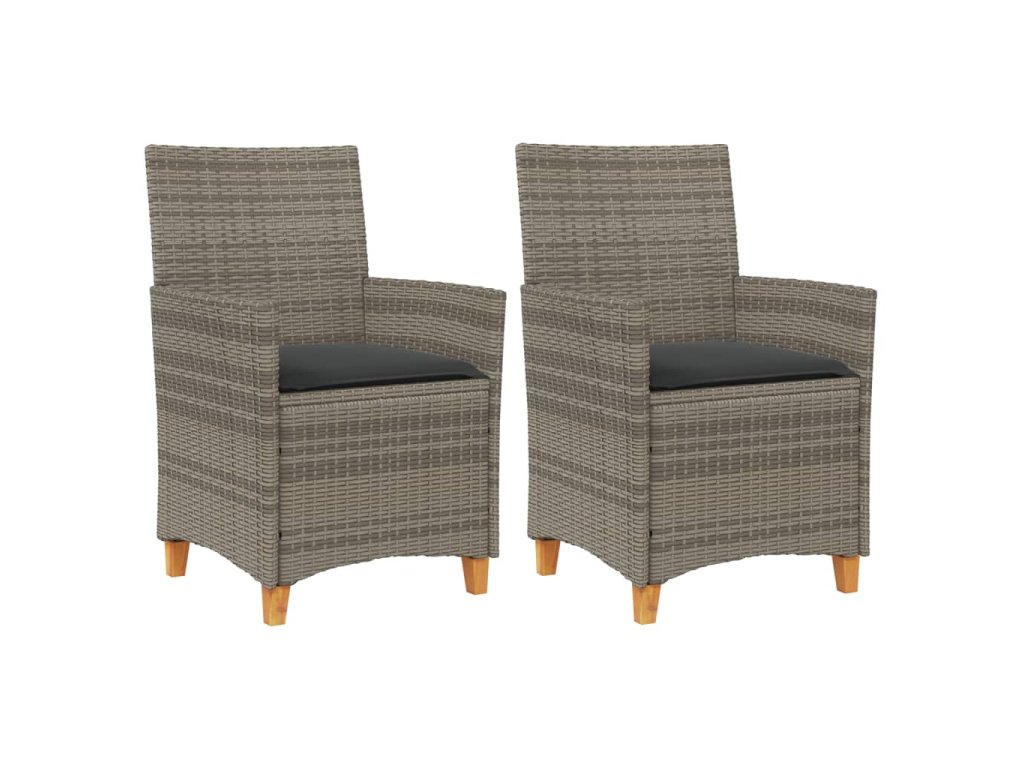 Zahradní židle s poduškami 2 ks šedé polyratan a masivní dřevo 368718