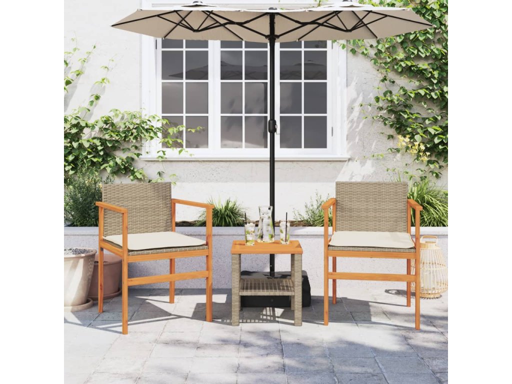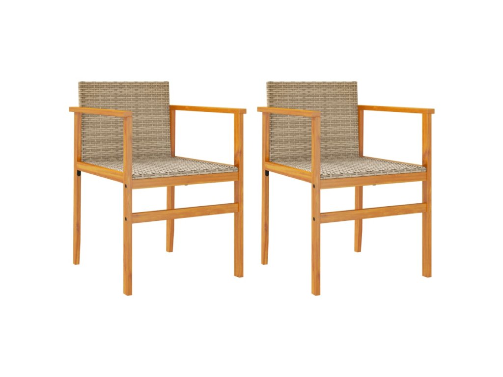 Zahradní židle s poduškami 2ks béžové polyratan a masivní dřevo 368713