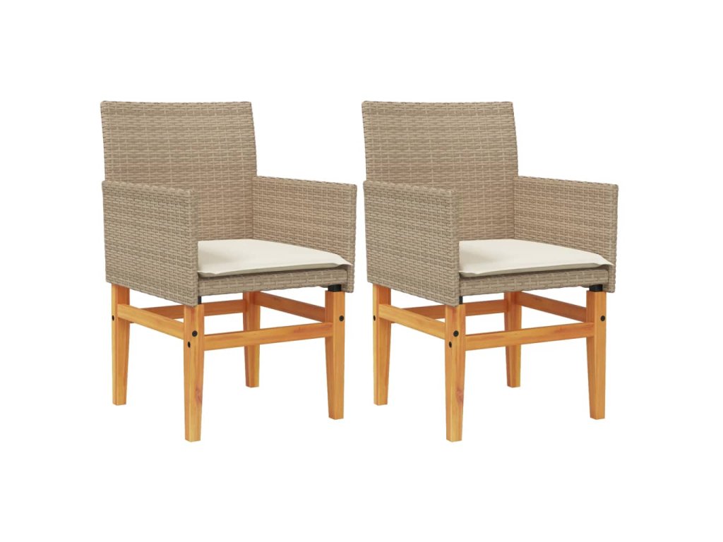 Zahradní židle s poduškami 2ks béžové polyratan a masivní dřevo 368716