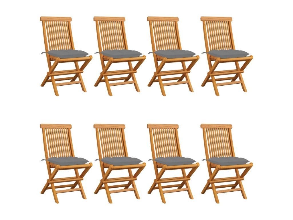 Zahradní židle s šedými poduškami 8 ks masivní teak 3072933