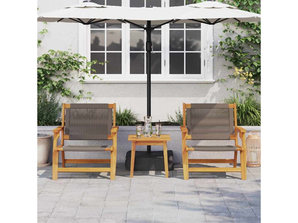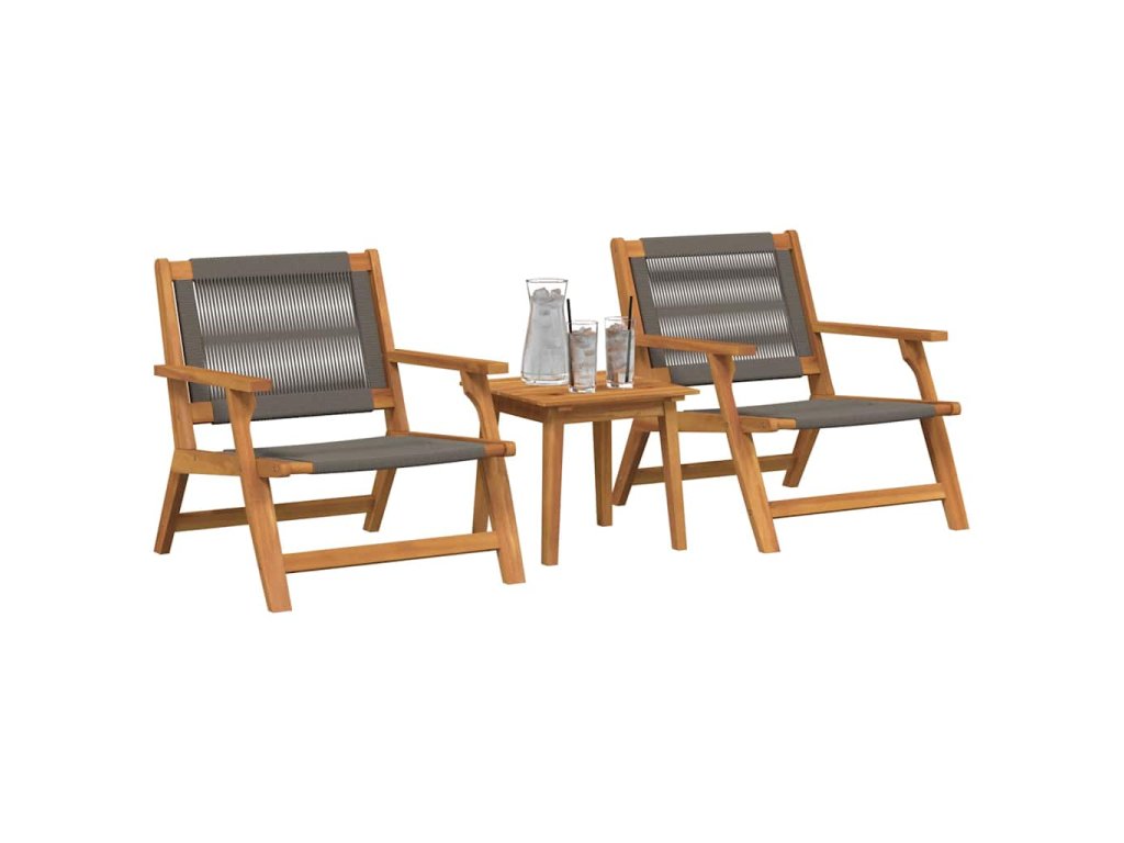 - Materiály: Sestava je vyrobena z masivního akáciového dřeva, známého svou trvanlivostí a hezkým vzhledem. Tato volba dřeva dodává nábytku vizuální kouzlo a zajišťuje odolnost proti počasí, ideální pro dlouhé venkovní užívání.