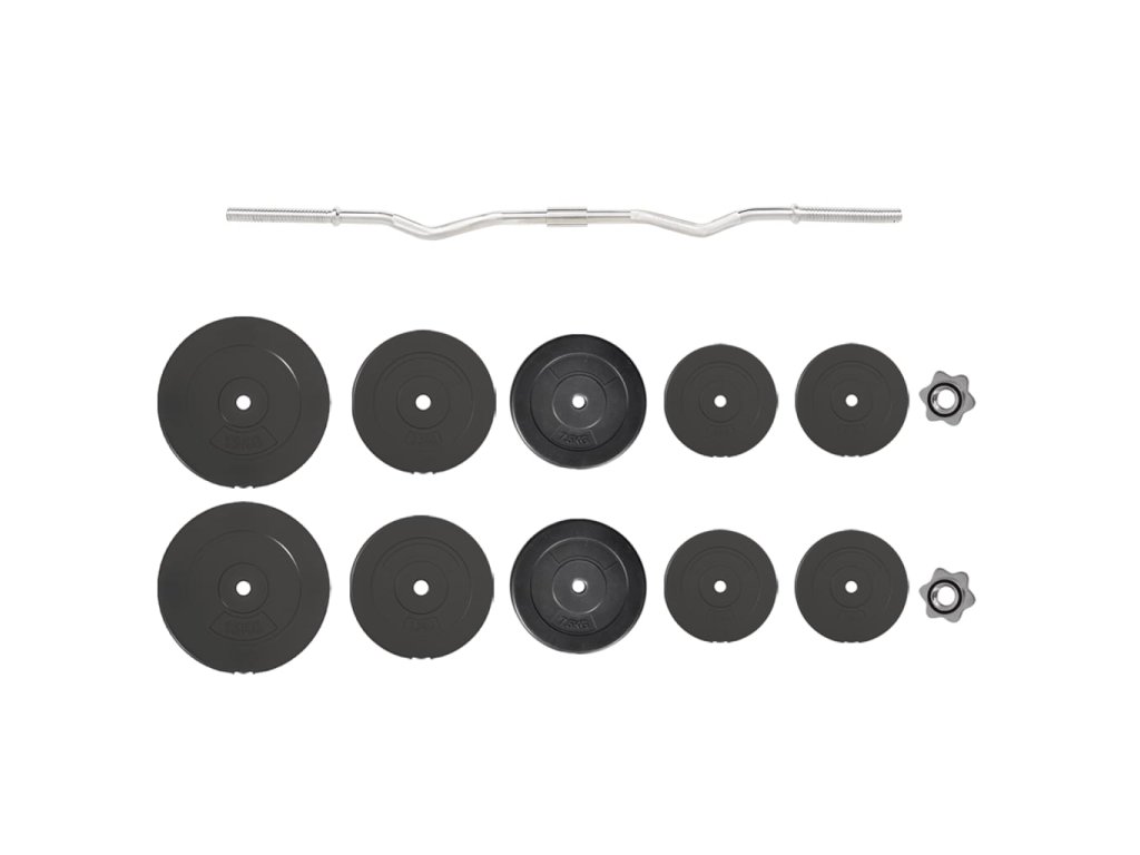 - Hmotnost kotoučů: 4x 5 kg, 2x 7,5 kg, 2x 10 kg, 2x 15 kg