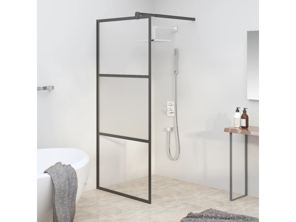 Zástěna do průchozí sprchy 80x195cm napůl mléčné ESG sklo černá 151872