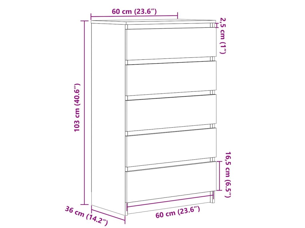 - Spousta úložného prostoru: Tato komoda s 5 prostornými zásuvkami vám poskytne spoustu místa k přehlednému uložení různých každodenních potřeb, které tak budete mít neustále po ruce.