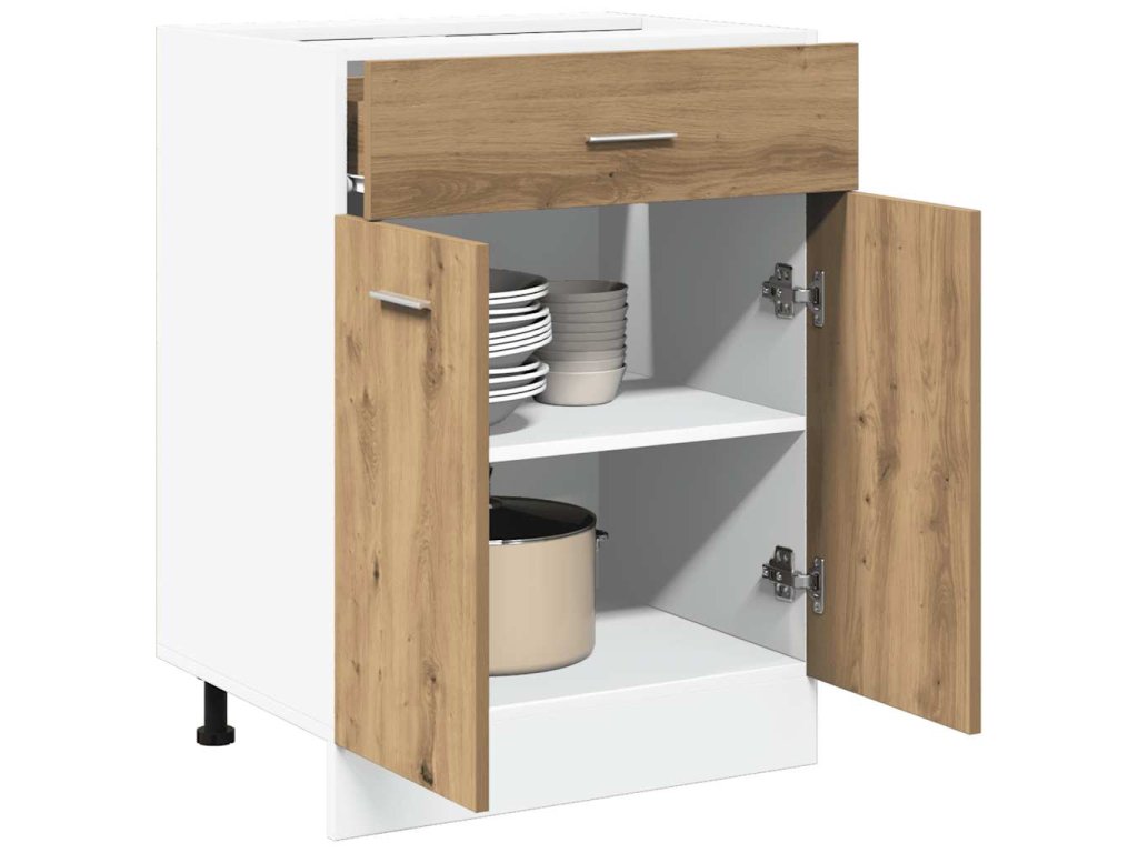 - Spousta úložného prostoru: Skříňka má 1 zásuvku a 2 přihrádky a nabízí dostatek prostoru pro uložení misek, talířů, hrnců nebo kuchyňských spotřebičů.