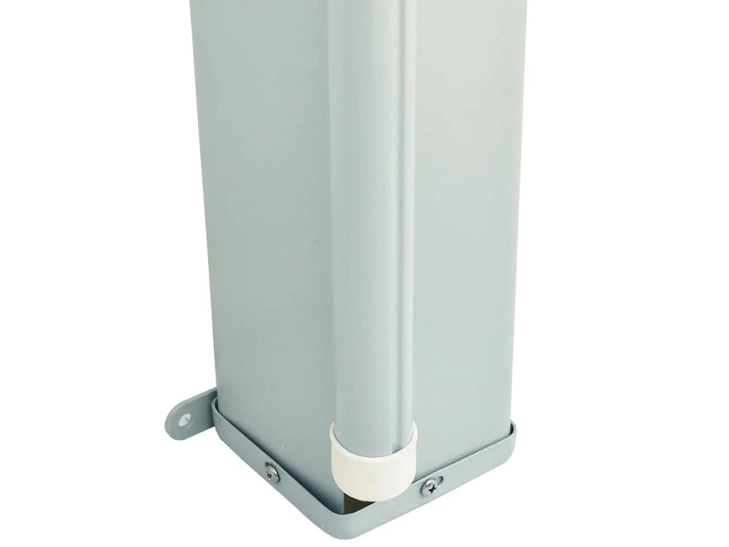 Zástěna je vyrobená z polyesteru, který je odolný proti UV záření a netrhá se. Na robustní ocelové základně je ve vertikální pozici nainstalovaná kazeta, z níž boční markýzu snadno roztáhnete. Markýza rovněž disponuje funkcí automatického srolování.