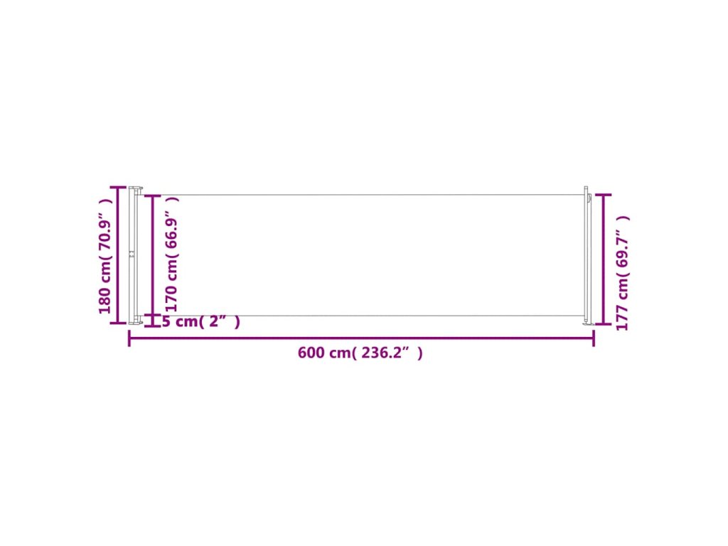 Zatahovací boční markýza 180 x 600 cm šedá 317968
