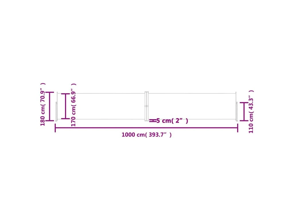 Jednoduchý a přitom stylový design této zástěny se bude krásně vyjímat na každé zahradě, terase, balkonu apod. Zatahovací boční markýza je vybavená funkcí automatického zatažení a můžete ji roztáhnout do šířky až 1 000 cm. Je vyrobená z polyesteru potaženého PU vrstvou, který chrání proti UV záření, netrhá se a je voděodolný.
