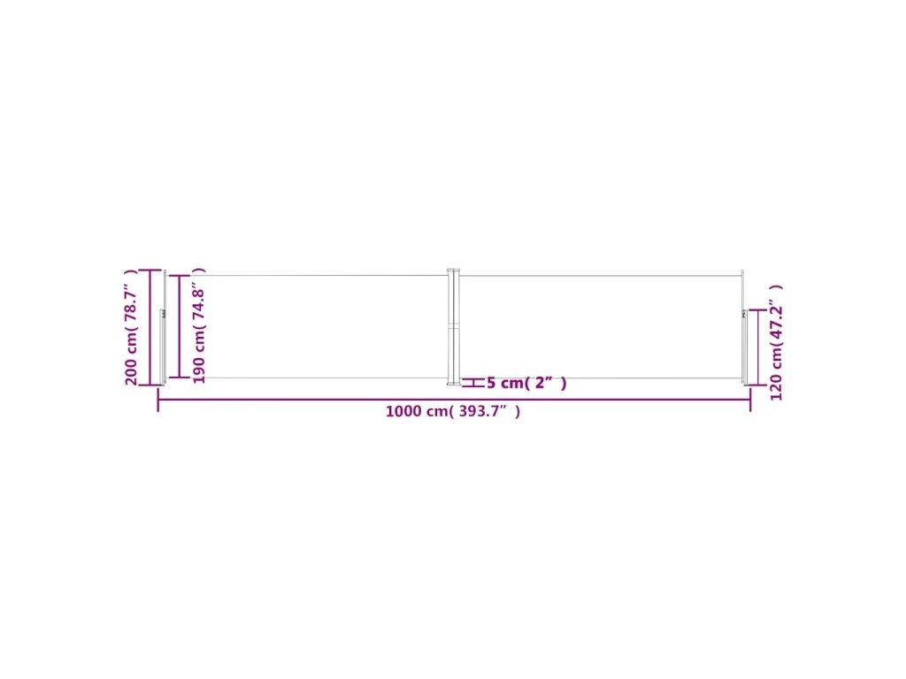 Jednoduchý a přitom stylový design této zástěny se bude krásně vyjímat na každé zahradě, terase, balkonu apod. Zatahovací boční markýza je vybavená funkcí automatického zatažení a můžete ji roztáhnout do šířky až 1 000 cm. Je vyrobená z polyesteru potaženého PU vrstvou, který chrání proti UV záření, netrhá se a je voděodolný.