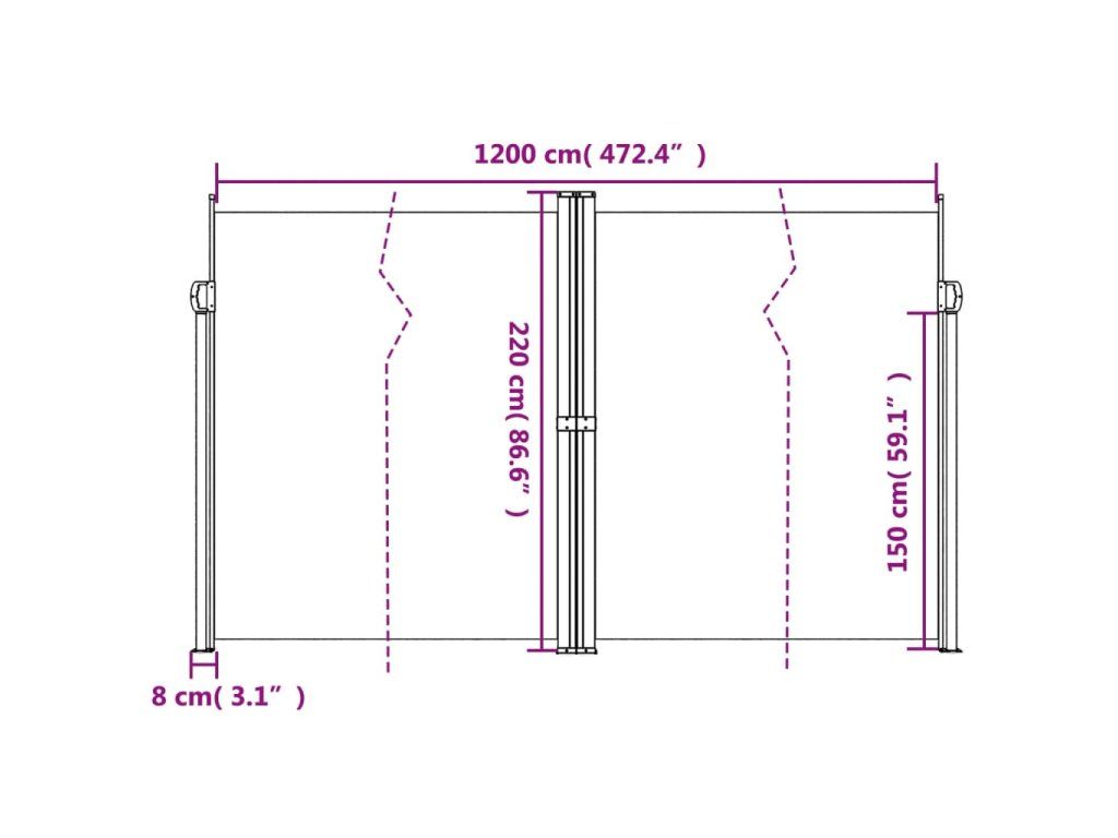 Zatahovací boční markýza béžová 220 x 1 200 cm 4004870
