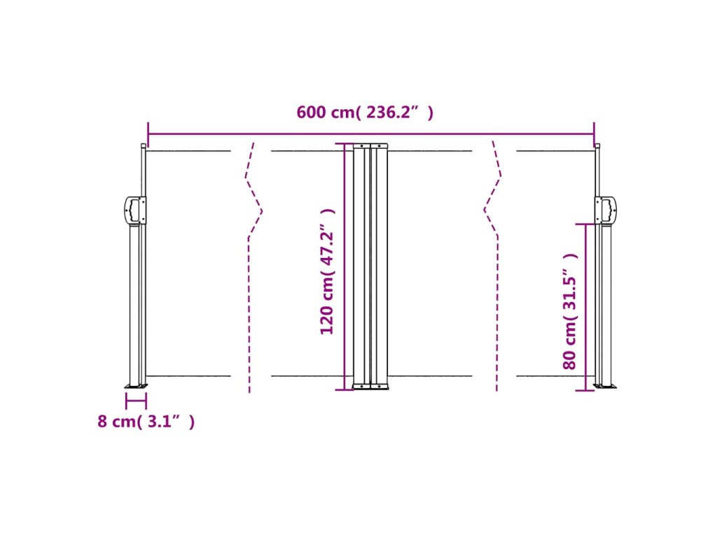 Zatahovací boční markýza bílá 120 x 600 cm 4004601