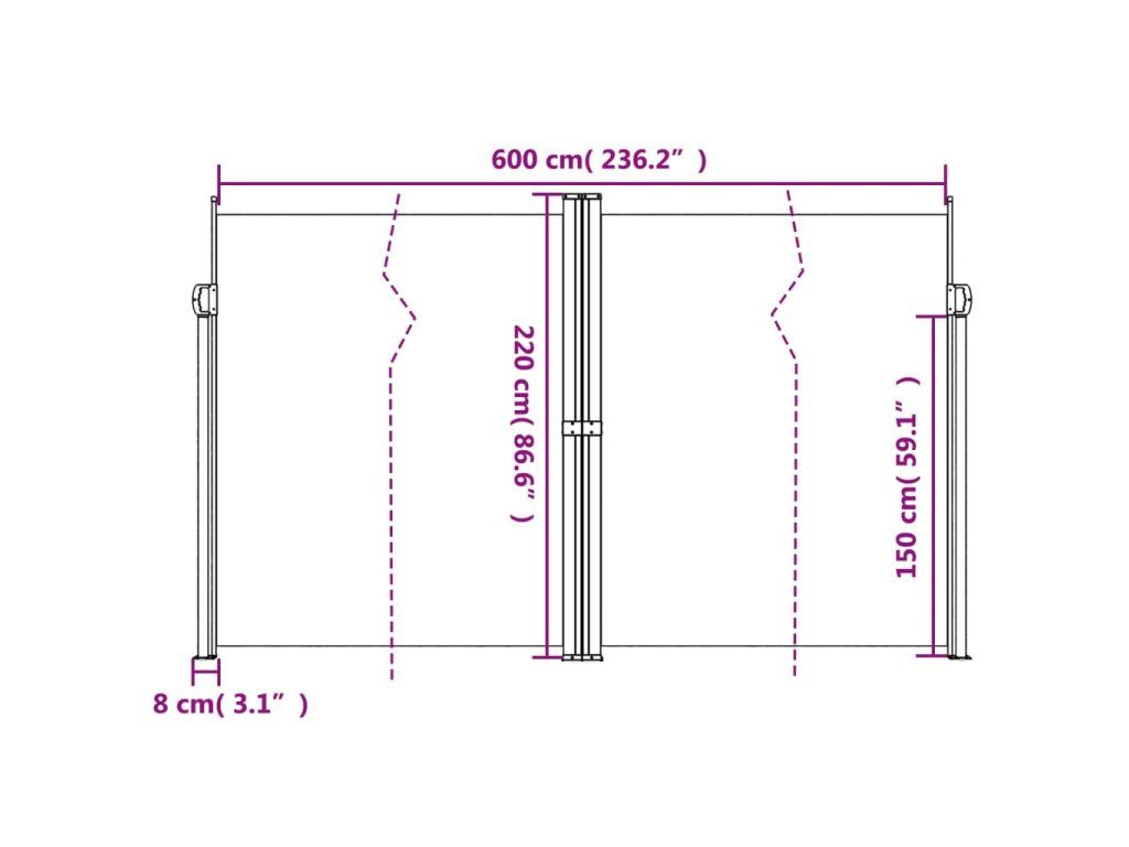 Zatahovací boční markýza bílá 220 x 600 cm 4004676