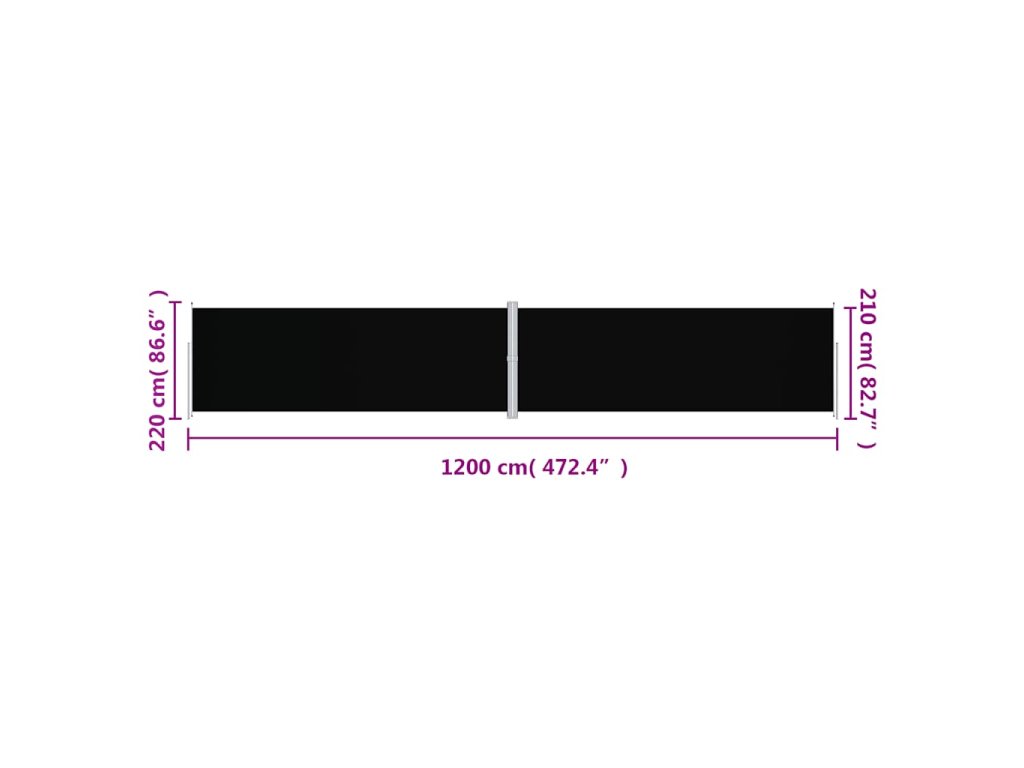 Zatahovací boční markýza černá 220 x 1 200 cm 318084