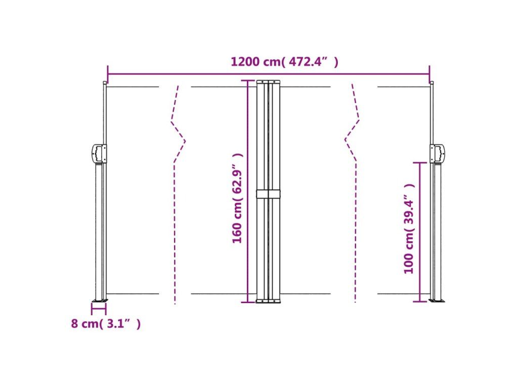 Zatahovací boční markýza hnědá 160 x 1 200 cm 4004824